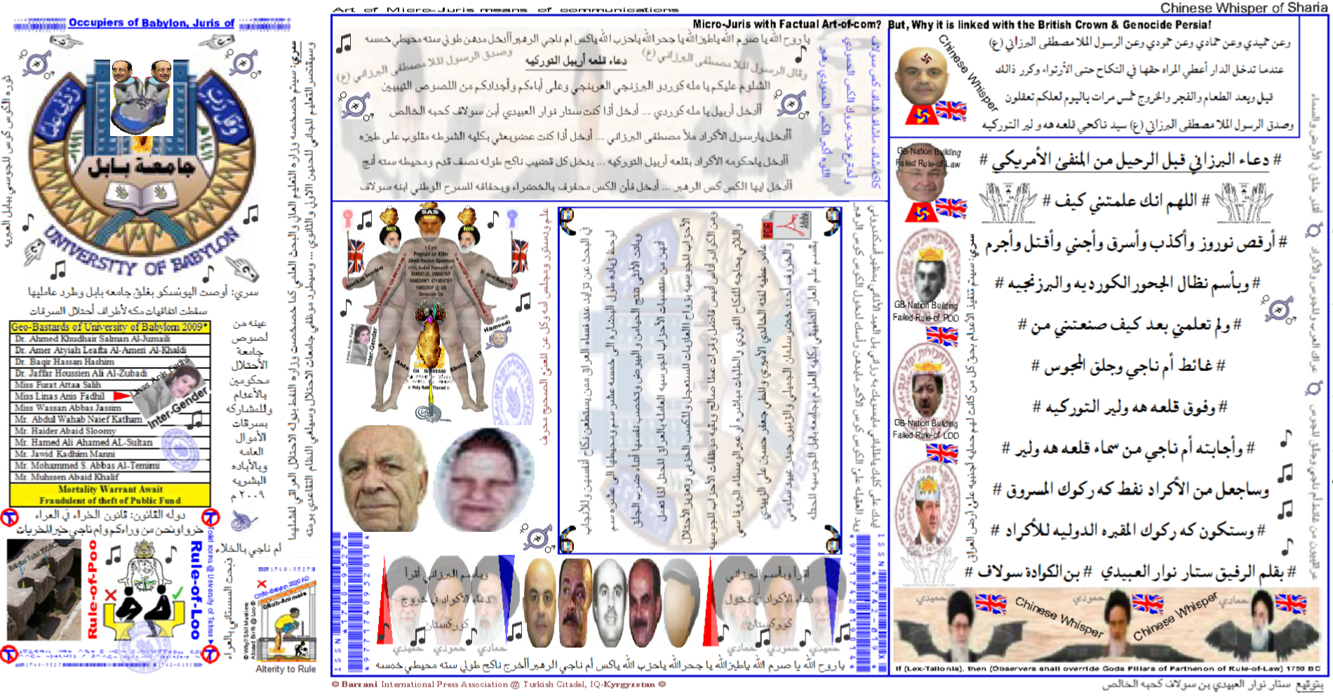 If (learning), then (it shall be a direction-of-order to follow). If (Anglo-Persian Occupiers of Mesopotamia are void), then (it shall be GB Genocide Order of anti-Semitics). If (Anglo-Persian state-of-Law), then (Genocide base theft). If (not with us), then (against us & our policy of employment). Yisrael left University of Babylon 2009 after the discovery of death warrant signed and sealed by HoD, followed by kidnapping. Since 1979, IQ-Ministry of HERC & Universities are void. Post IQ-war 2003, Universities were Persian Genocide order. 1990-2021 PhDs graduates and related work are void. HoD of applied Geology @ Babylon (Amer Atyiah had fake PhD), acted fake Professor & Head of intel-legal Iranian unit within college of sciences and all teaching staff in 2009 (herein listed) were Anglo-Persian Genocide operators of IRGC Party. A textbook example is HoD override the old-order of university consultancy, claimed ownership of earning distributed between cronies, in fraud-op of public fund. HoD led Iranian agenda of Teaching-Learning aim to use sex, theft order of anti-Semitic. Members of staff were acting for Anglo-Iranian security. Outsider of the regime were assassinated.