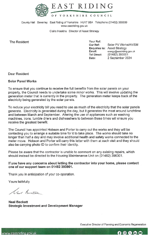Pre-press Red flag: anti-Semite Neal Beckett of ERYC, Hobson&Porter & fraudster ecolec-co of Handley’s local Gov are forcing tenants (non contractual not legal anti-Semite act) towards compulsory investments to re-install PV-meters for existing top-roof toys of solar panels. This embedded the use of tenants’ electricity, WiFi, SIM-card, Spy eBugs, etc. Wherein, daily data are collection across the road by third party IT-op). If (annual benefit <£50 per house stolen from e-tenants), then (it shall profit the share holders of local council Gov of fraud strategic investments). UK-ERYC Tenants shall stop Gov, and to Proceed @ Discretion by any means Necessary.